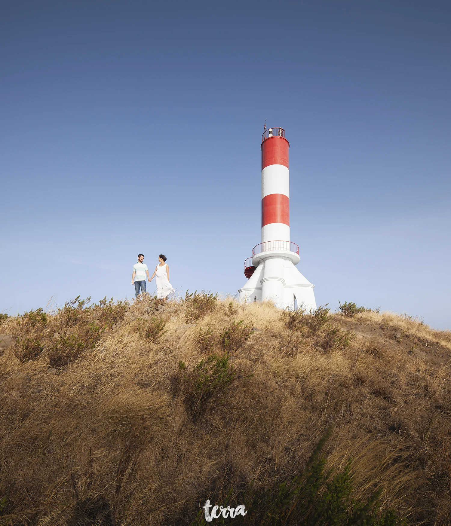This shoot took place in a place with no risk at all, if it was not the wind that almost took us and a belly just six days before giving birth to a tiny girl, who we already had the opportunity to meet and photograph.